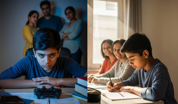 Arjun, a 14-year-old, spent late nights on gaming and struggled in school. His parents scolded him daily. After the Mental & Digital Wellness Test, they realized Arjun was using games as an escape from exam stress. With small changes in routine, his screen time reduced โ and family peace returned.